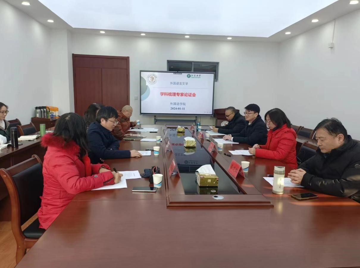On January 11th, School of Foreign Languages of Jiangsu University convened an expert consultation meeting for the foreign language disciplines in the fifth-floor conference room. Prof. He Shanhua, Dean of College of International Studies of Yangzhou University, Prof. Zeng Jingting, Dean of School of Foreign Languages at Jiangsu University of Science and Technology, Research Professor Xu Bu, Chairman of the Board of Directors of the Institute of Global Development and Security of Jiangsu University, along with five professors from School of Foreign Languages, were invited to attend the consultation meeting. The meeting was chaired by Prof. Li Chongyue. Prof. Li Chongyue first briefly introduced the development of the foreign language disciplines in the school, and then he reported in detail the specific content of the discipline organization, including the characteristics, teams, and construction goals and measures of the various sub-disciplines over the past three years. On the basis of teachers' opinions, in order to adapt to the general trend of the development of foreign language disciplines and the current situation of the school's faculty, the direction of "Country and Region Studies" was added, while the "Japanese Language and Literature" direction was cancelled, and the faculty of the Japanese language discipline was integrated into the directions of "Foreign Linguistics and Applied Linguistics" and "Country and Region Studies" . The experts present fully endorsed the programme of discipline sorting, and also put forward constructive opinions on further improvement of the programme. (School of Foreign Languages)