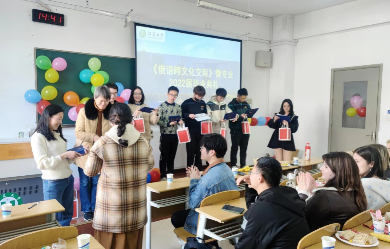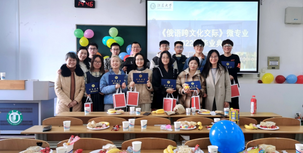 On March 20th , the first graduation ceremony for the micro-major "Russian Intercultural Communication" at the School of Foreign Languages was held in Room J2302. 13 outstanding students successfully finished all the courses of the micro-major, passed the assessments, and were awarded the "Russian Intercultural Communication" micro-major certificate by Jiangsu University.