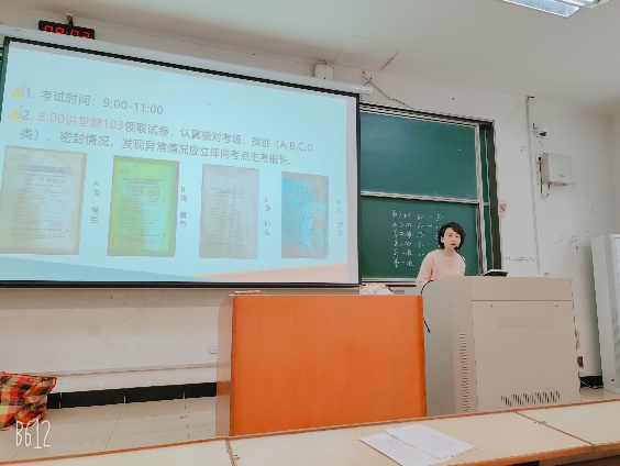 In order to regulate the order of the examination rooms and strictly enforce the examination atmosphere and discipline, Ju Xiaoli, director of the Subject Competition Guidance Center of the School of Foreign Languages, organized an examination training meeting before the competition, providing examination work training for examination personnel and invigilators, and explaining in detail the examination work process and requirements. During the examination process, invigilators conscientiously fulfilled their duties, strictly enforced the discipline of the examination rooms, verified the identity information of candidates, and cleaned up the items unrelated to the examination. Vice Dean Li Jiajun and other examination staff conducted a examination patrol .