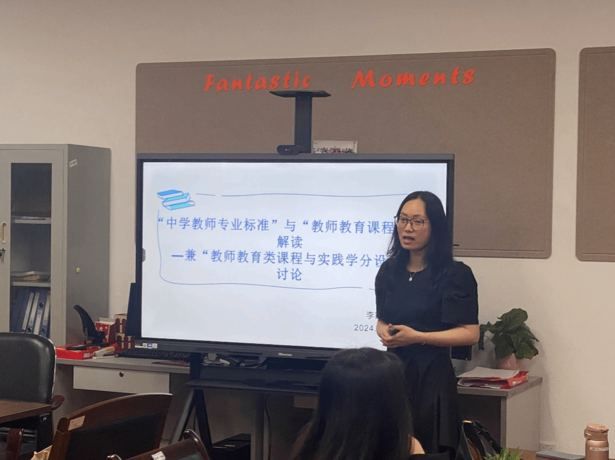 Teaching without research is superficial, and research without teaching is empty. In order to further explore the teacher education accreditation standard system and promote the accreditation of English teacher education courses, the Department of English successfully held a special teaching and research activity on May 22nd with the theme of ‘Interpretation of Standards and Discussion on the Determination of Teacher Education Courses and Practice Credits’. English Department Director Mao Yanfeng presided the activity, and Executive of English Education Major Li Xia gave the presentation. All teachers from the English Department attended the activity and had a lively discussion. Besides, Teaching Affairs Department supervisors Mao Haiyan, Tao Minghua and Ma Hanwu conducted on-site guidance.