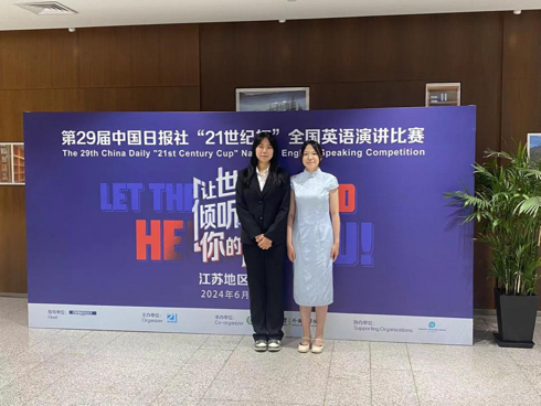 On June 22, the Jiangsu Regional Finals of the 29th China Daily “21st Century Cup” National English Speaking Competition concluded at Nanjing Forestry University. A total of 39 contestants from prestigious universities such as Nanjing University, Nanjing Normal University, and China Pharmaceutical University competed fiercely. Pan Yefei, a 2021 student from the English program of the School of Foreign Languages, won the First Prize in the Jiangsu Regional Finals and successfully advanced to the National Semifinals. Meanwhile, Chen Ranran, a 2022 English program student, won the Second Prize in the Jiangsu Regional Finals.