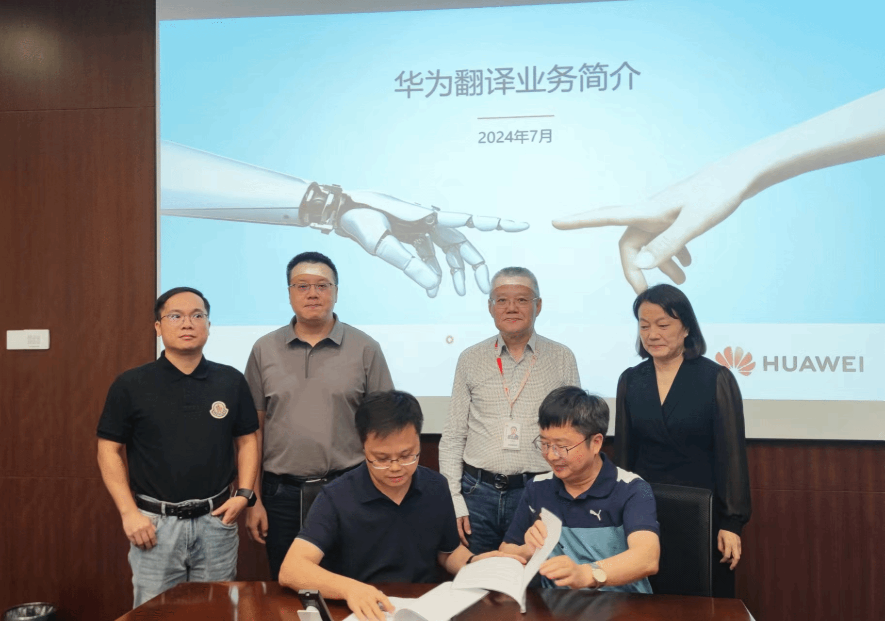 At Huawei's Translation Center, Jiang Yanfei, General Manager of the center, extended a warm welcome to Chen Hong and her delegation. She introduced the center's human and machine translation tasks, translation quality standard control, and Huawei's leading position in the machine translation industry. She emphasized that machine translation is currently one of the fastest and most successful applications of AI. The translation industry should recognize, adapt to, and initiate changes, believing that only through human-machine integration can human-machine coexistence be achieved. The translation industry has the opportunity to set an example for AI applications. Both sides conducted in-depth exchanges on the cultivation of foreign language talents, especially translation talents. Li Chongyue, Dean of the School of Foreign Languages, and Jiang Yanfei, General Manager of Huawei's Translation Center, signed a memorandum of cooperation on behalf of both parties.