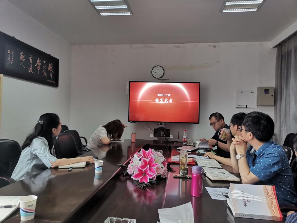 谢志芳首先对本次学习安排作了简要说明,随后以PPT形式以“三聚焦”、着力“六个注重”汇报了学院党史学习教育前阶段工作,同时对下一阶段党史学习教育安排作了说明。接着全体参学人员观看了《百炼成钢:中国共产党的100年》纪录片第四十二集恢复高考。通过观看生动的视频,大家认为,如今站在实现“两个一百年”奋斗目标历史交汇点上,我们有信心期待,高考制度将继续为实现“两个一百年”奋斗目标、实现中华民族伟大复兴中国梦提供源源不断的人才支撑!