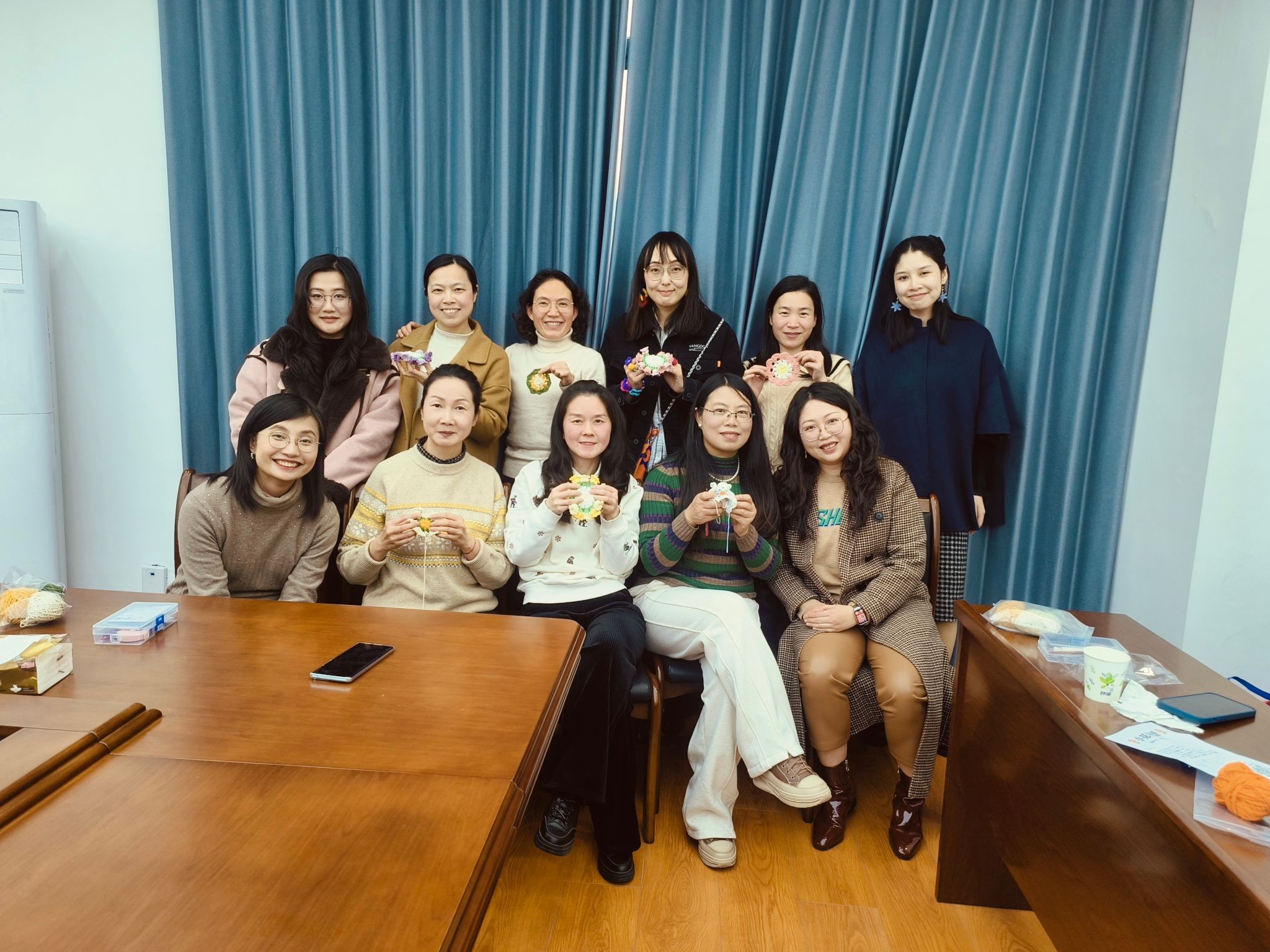 女教职工们学习热情高涨,课堂气氛和谐热烈,欢声笑语不断。在掌声和节日的祝福声中,大家收获到满满的幸福感和成就感。女教职工们纷纷表示,本次活动不仅让大家学习到了钩织的技艺,感受到传统文化的独特魅力,更是在沟通和交流中拉近了同事之间的距离。