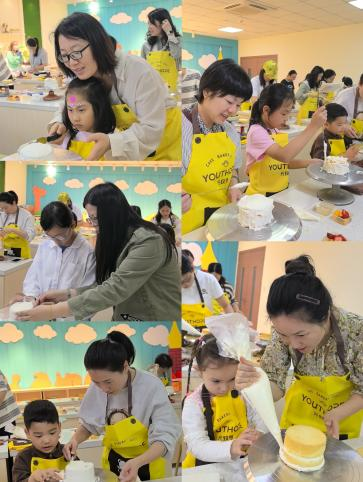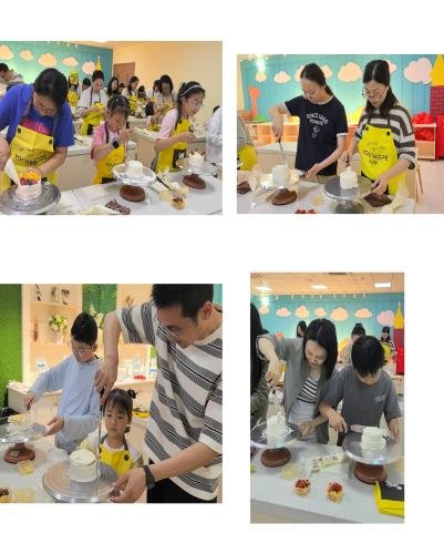参观完生产线后,最令人期待的蛋糕DIY裱花活动正式开始。在工作人员的悉心指导下,老师们和孩子们纷纷化身“烘焙达人”。小朋友们兴奋不已,眼睛里闪烁着好奇与期待的光芒,他们的小手在蛋糕胚上小心翼翼地涂抹奶油,发挥着自己的奇思妙想,创作出一个个独具特色的蛋糕作品。老师们也积极参与其中,与孩子们亲密互动,现场充满了欢声笑语。大家一边制作蛋糕,一边交流心得,不仅增进了亲子之间的感情,也让老师们暂时放下了工作的压力,享受这温馨的亲子时光。