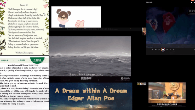 下午,首先,20位优秀营员通过英语、日语和德语的自我介绍、朗诵和趣配音,为在场每一位参与者带来了一场视听盛宴。本环节不仅为夏令营增添了一抹亮丽色彩,更为营员们的成长之旅留下了难忘记忆。