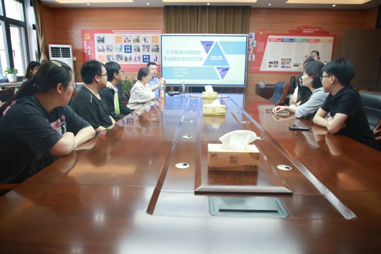参观完毕后,派出所开展了现场,采用PPT演示结合视频案例的形式,深入剖析了常见的诈骗类型,如网络购物诈骗、冒充公检法诈骗、兼职刷单诈骗等。大屏幕上,诈骗分子的作案手法、话术特点被一一拆解,真实的数据和案例更是让师生们看得心惊胆战。