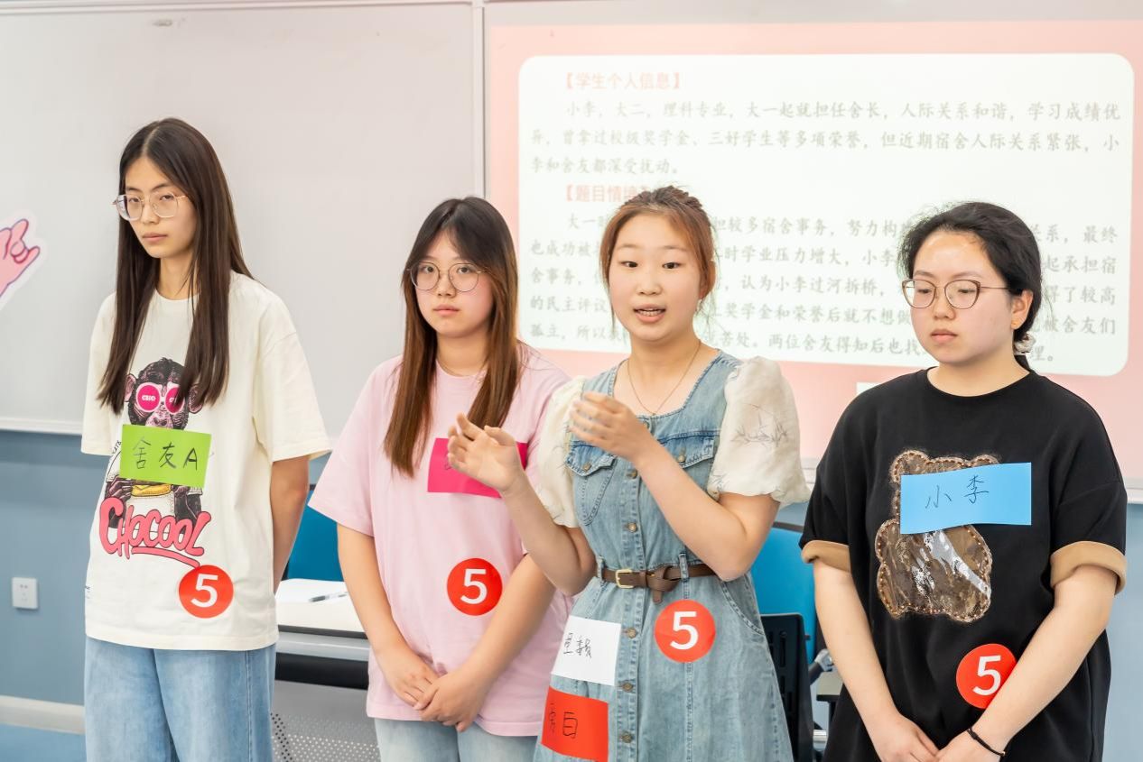 5月14日,yl7703永利集团首届大学生心理委员技能竞赛决赛在三山楼704教室圆满落幕。经过激烈角逐,由我院日语2401祁秋雨、英师2403祁妙、英语2401汤米嘉、英师2402方雪妍四位心理委员组成的“外”有引力队凭借扎实的专业知识、出色的心理辅导技能和沉稳的现场表现,在比赛中脱颖而出,荣获一等奖,心理辅导员王磊获优秀指导教师。
