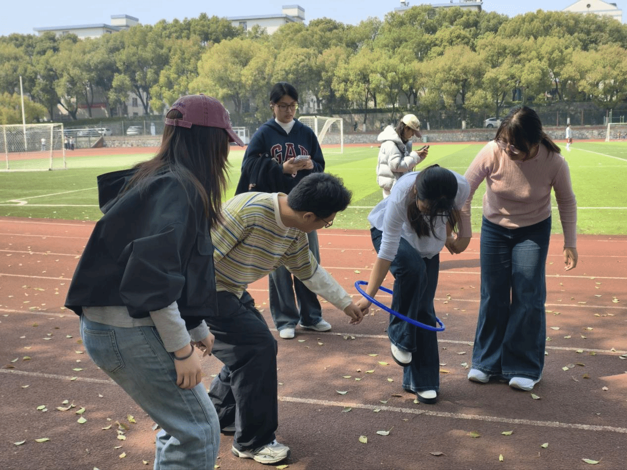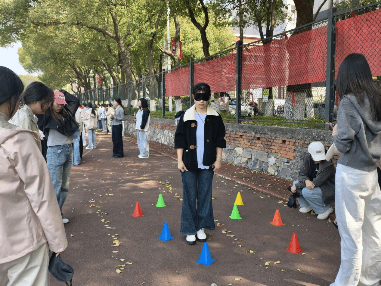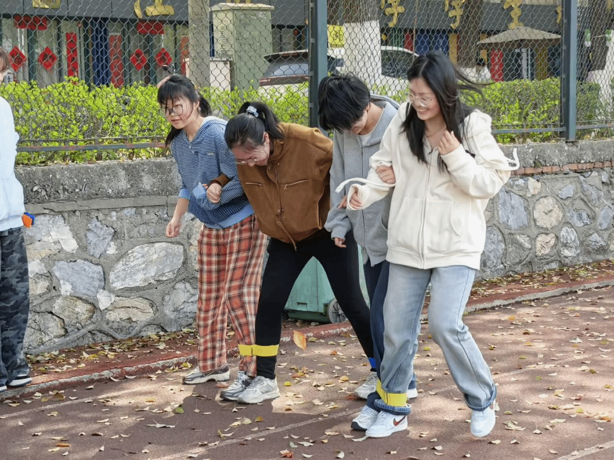 本次趣味运动会以“趣味竞技+心理赋能”为核心,精心设置了“你划我猜”“蒙眼前行”“四人三足”等团队协作项目以及皮筋挑战赛、沙包大混战等个人挑战赛。活动现场同学们整齐列队、分工明确、相互配合,参赛队员全力以赴投入比拼,围观同学热情呐喊、积极助威,欢呼声、加油声、笑声交织在一起,现场氛围热烈欢快。