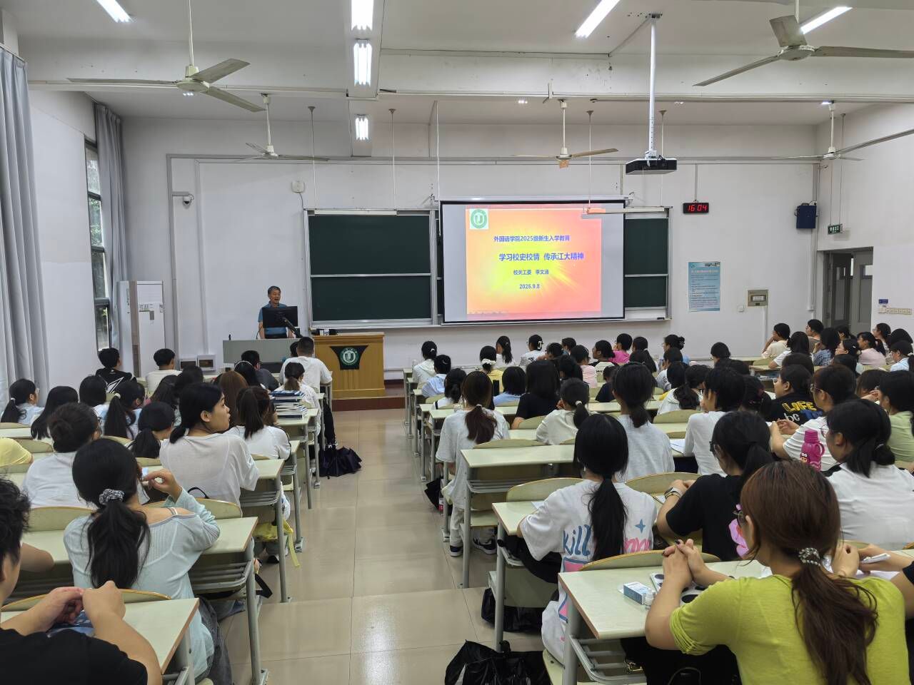 整场讲座从回顾江大校史,到立足现有成就,再到展望新生未来,逐步深入,为新生们树立了信心。此次讲座不仅让新生们对学校的历史和现状有了更深入的了解,也激励着同学们努力成为新时代的接班人,为中华民族伟大复兴征程而奋斗。