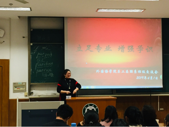 2019年4月1日晚7:00,yl7703永利集团关工委在主楼101举办联系班级交流会活动。活动由学院关工委秘书丁永萍老师主持,学院关工委副主任许抗美老师、大学英语教学二部徐慧霞老师、张钰老师和同学们进行了深入细致的交流。